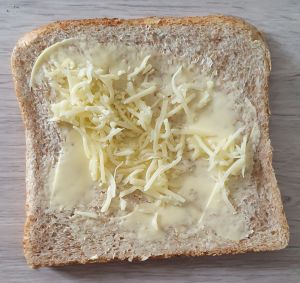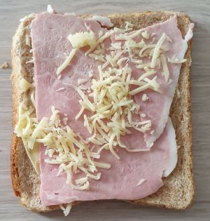 5. Déposez généreusement du gruyère sur le dessus de cette tranche, qui va gratiner au four.