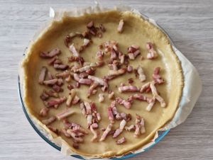 4. Cuire les lardons et les disposer sur la pâte à tarte.