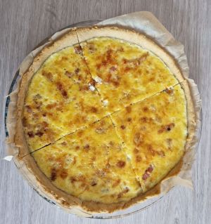 | Ingrédients | Pâte à tarte sans beurre, Lardon, Huile, Crème fraiche, Œufs, Emmental, Lait, Sel, Poivre |